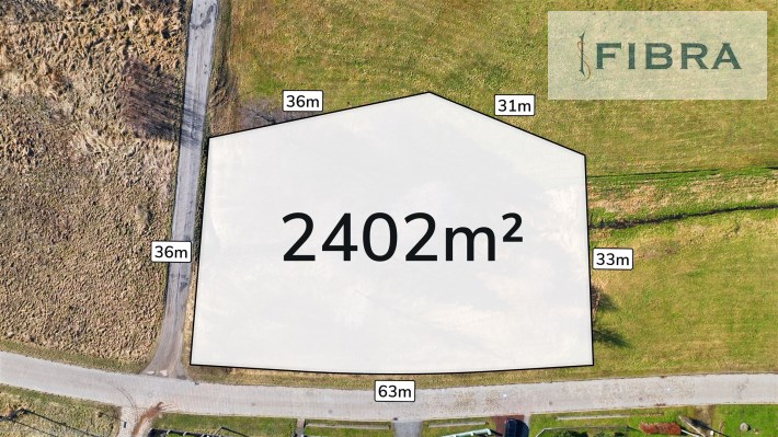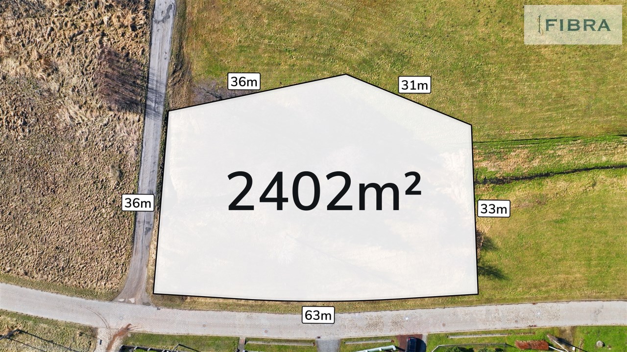 63m szerokoÅ›ci od strony drogi (front dziaÅ‚ki)Â