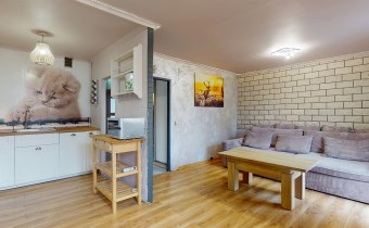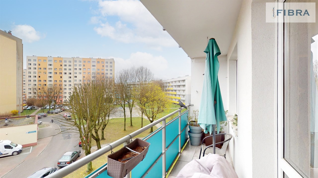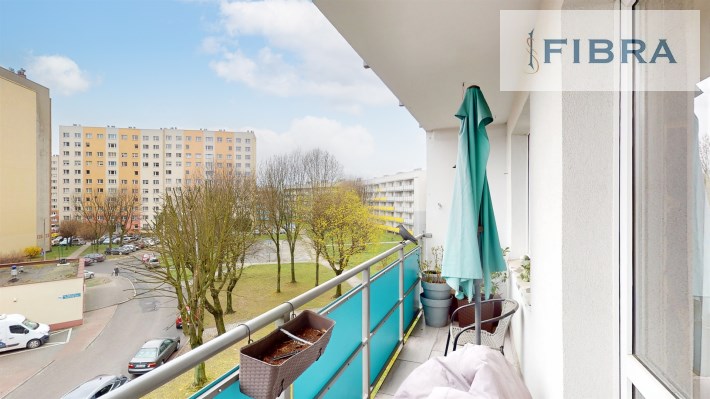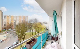 Z salonu prowadzi wyjście na duży balkon od strony południowej, dzięki czemu mieszkanie jest jasne i słoneczne przez cały dzień. Do mieszkania przynależy również piwnica.