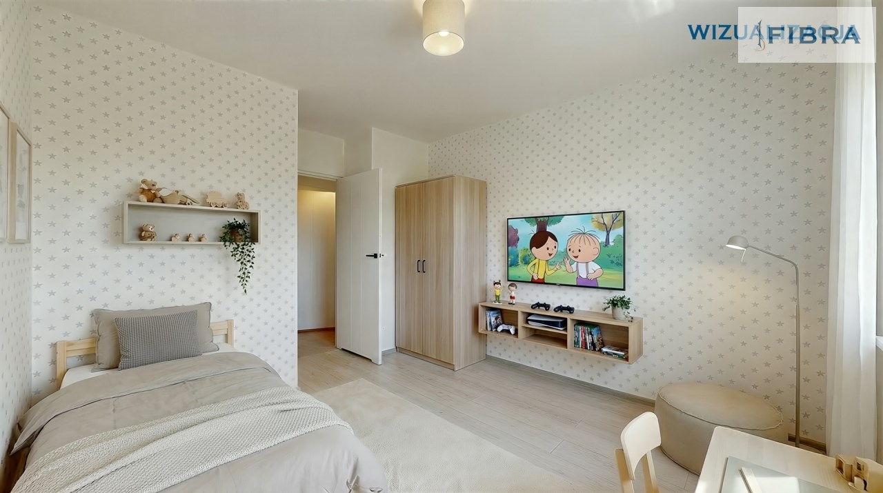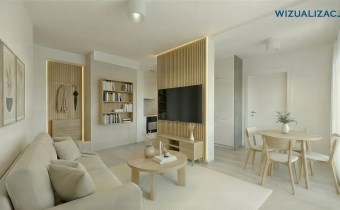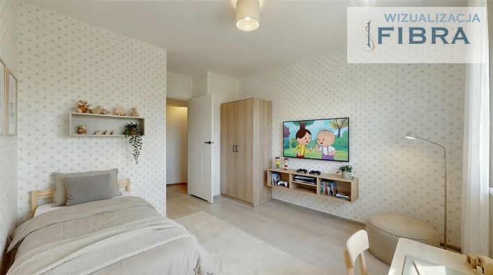 Przedstawione wizualizacje mają charakter poglądowy i prezentują przykładową aranżację wnętrza – nie odzwierciedlają one rzeczywistego stanu mieszkania.