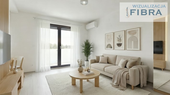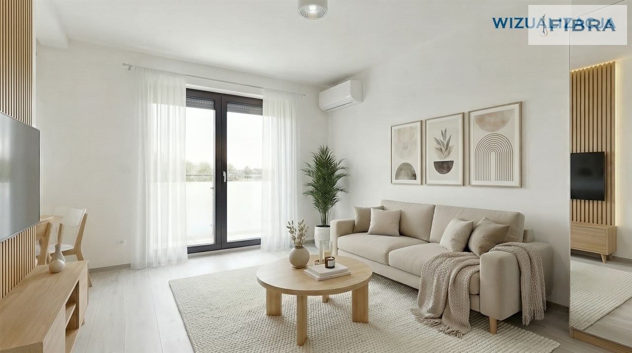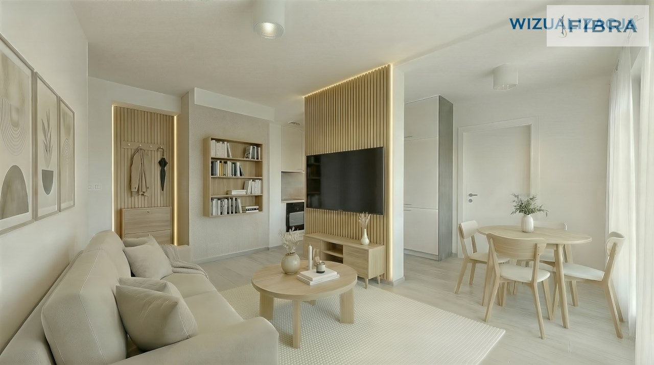 Przestronny salon z aneksem kuchennym, dwie wygodne sypialnie i nowoczesna łazienka.