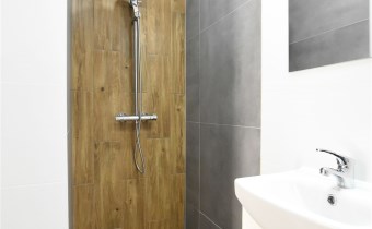 - w łazience - prysznic, umywalka z szafką i lustrem, kompakt wc, bojler,